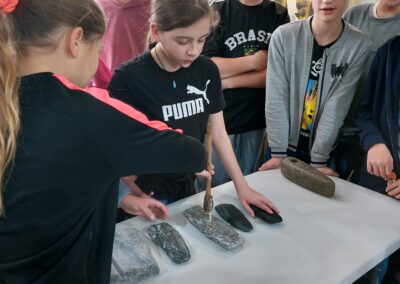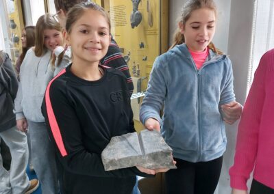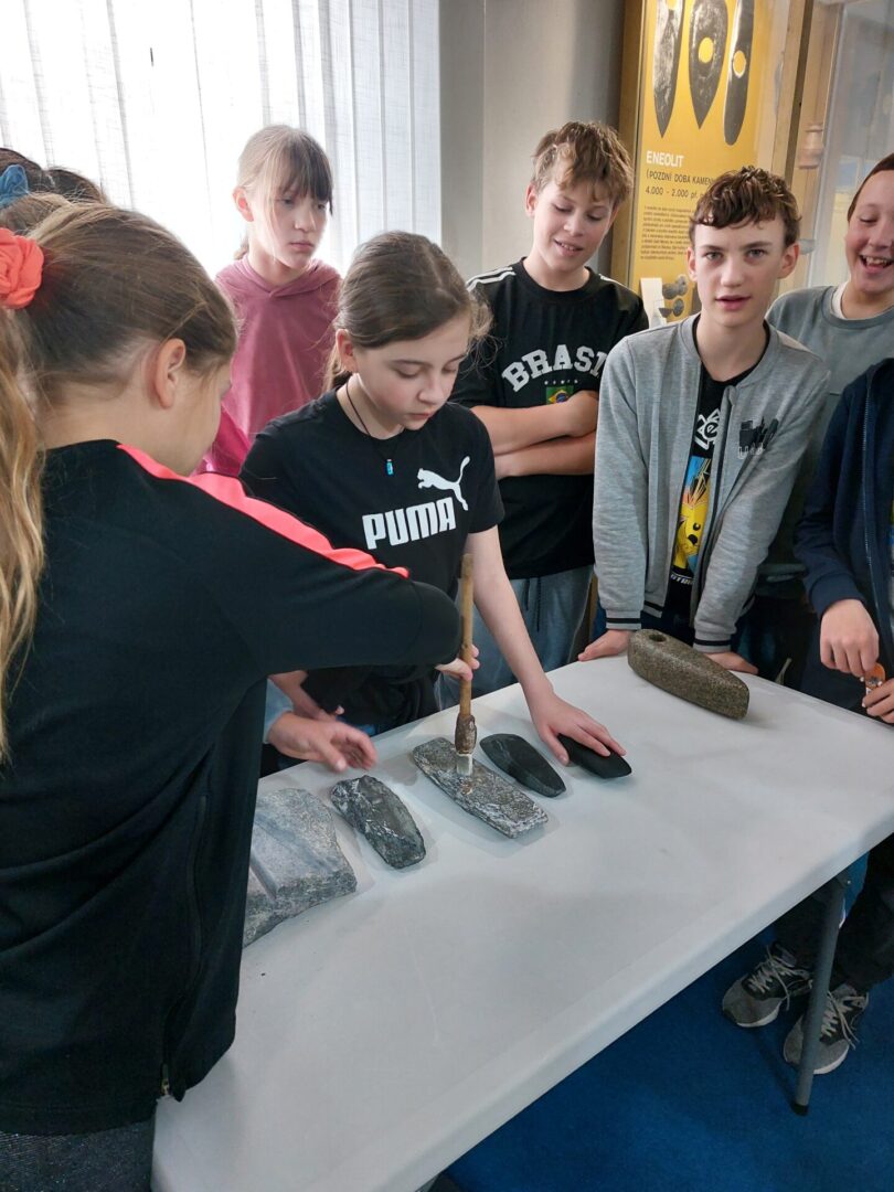 Žáci 6. ročníků se vydali za poznáním do města Brna. Nejprve si v Dietrichsteinském paláci MZK zahráli na archeology a pod vedením odborníka odkryli hrobku z doby železné. Identifikovali předměty nalezené v něm a zjistili informace o pohřbené osobě. Také měli možnost si osahat repliky nástrojů z doby kamenné.