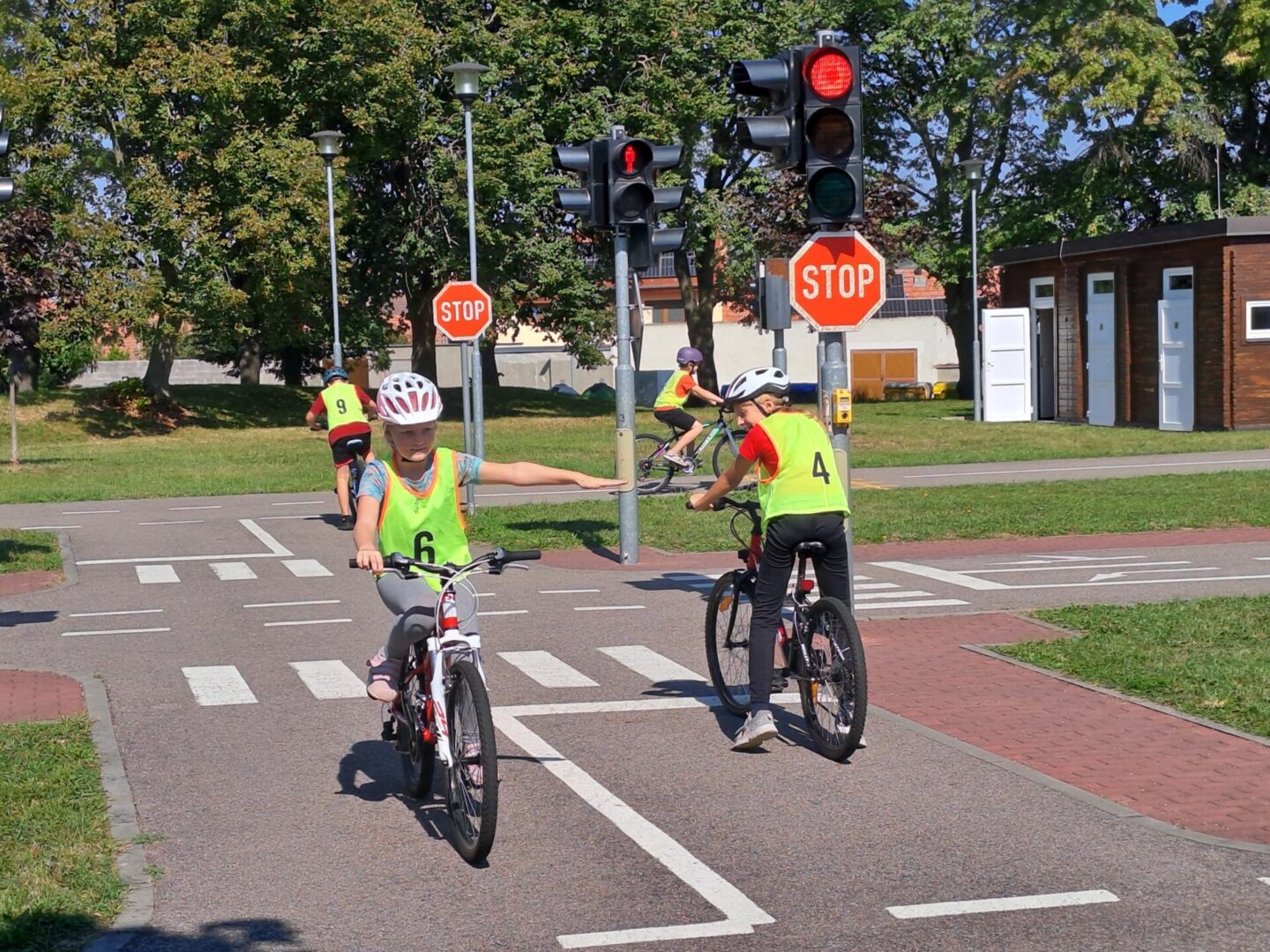 V úterý se žáci 4.A zúčastnili dopravní výchovy na dopravním hřišti v Hustopečích. Začali seznamenim s povinnou výbavou kola, pak pravidly silničního provozu a následovala zkouška zručnosti mezi překážkami. Ukázalo se, že je tu spousta dětí, které své kolo dokáží velmi dobře ovládat. Pár dětí s překážkami bojovalo, ale nikdo jízdu nevzdal. Nejzajímavější bylo skloubit jízdu a správně dodržovat pravidla silničního provozu. Nejlepší žáci získali skvělé odměny v podobě reflexních pásků.