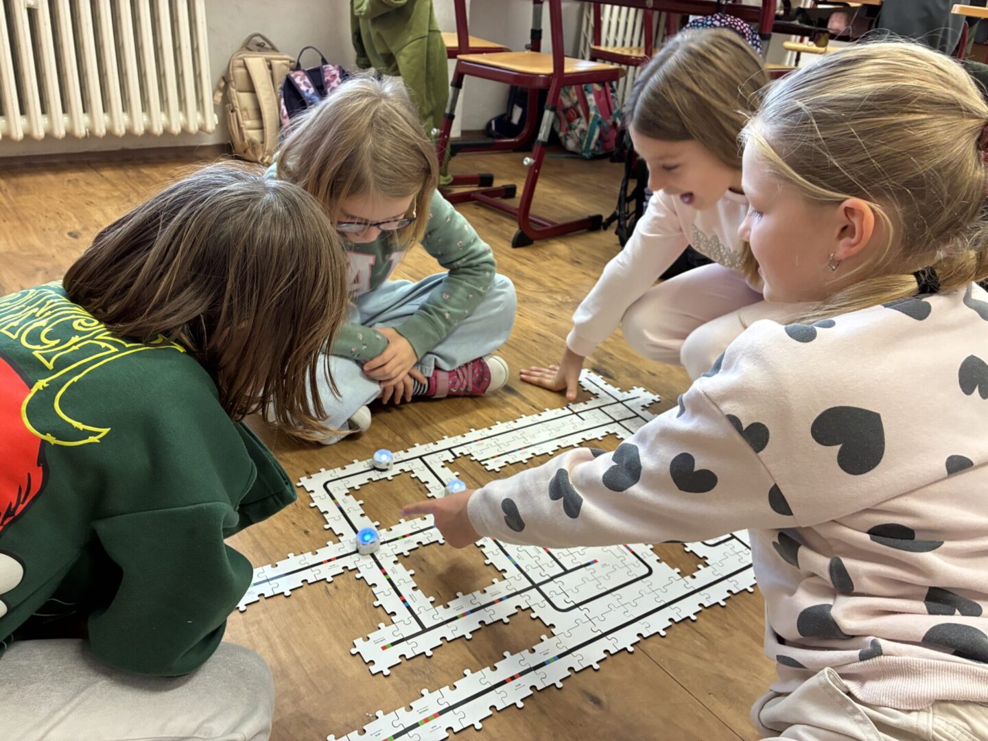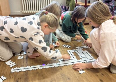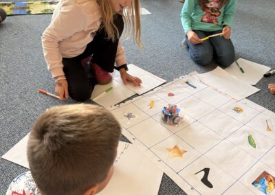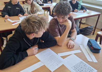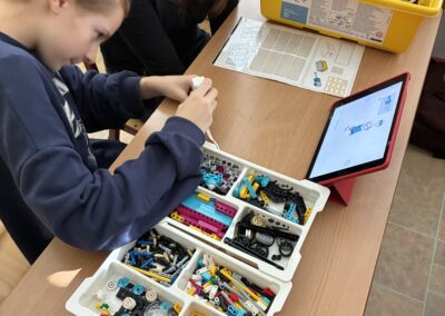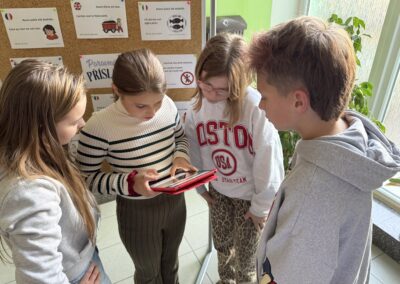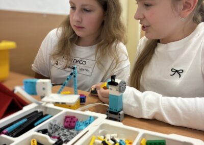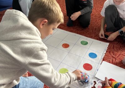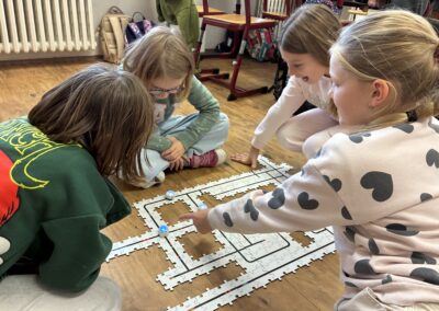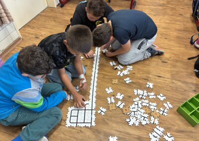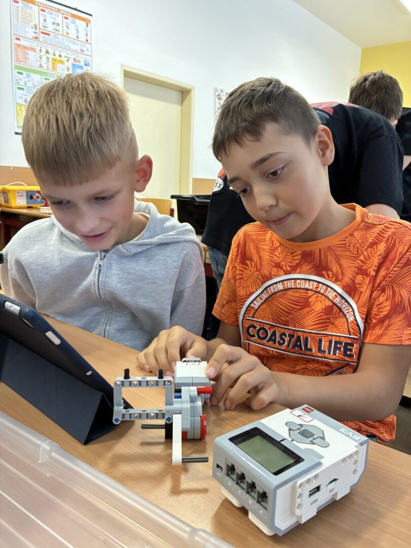 Žáci si také vyzkoušeli únikové hry, které prověřily jejich schopnost spolupráce, trpělivost i logické myšlení. Velký úspěch měly aktivity s roboty – ozoboty, blueboty, Lego Spike a Mindstorm, kde se děti učily základům programování hravou formou. Nechyběly ani moderní technologie – QR kódy, aplikace Actionbound nebo různé online šifry.