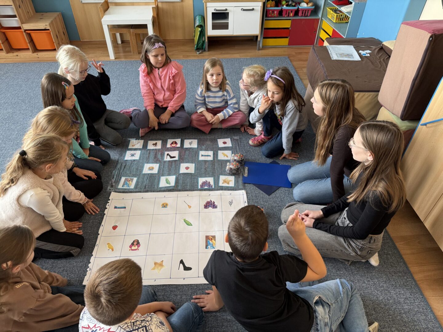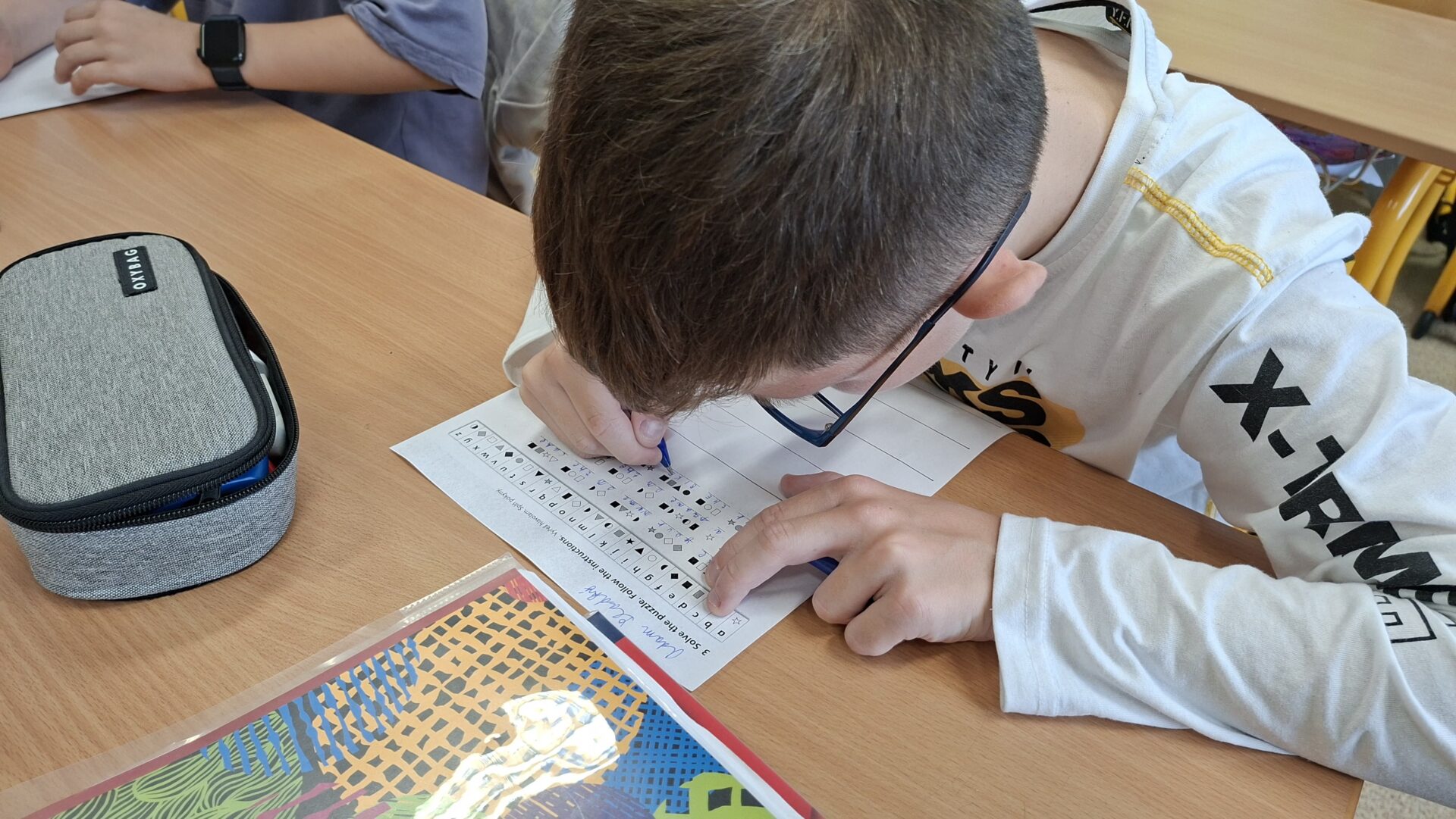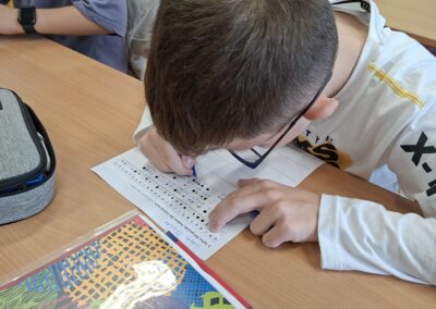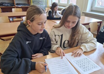 Během jednoho týdne jsme se proto pustili do nejrůznějších aktivit napříč vyučovacími předměty. V matematice jsme kódovali a řešili logické úlohy, v hudební výchově jsme luštili písně pomocí morseovky a obrázků a ve výtvarné výchově jsme „programovali“ barvy a tvary podle přesných instrukcí. Zakódované byly i pohyby v tělesné výchově. Angličtinu jsme si zpestřili luštěním symbolů a kódovaných slov, což byla výzva i zábava zároveň.