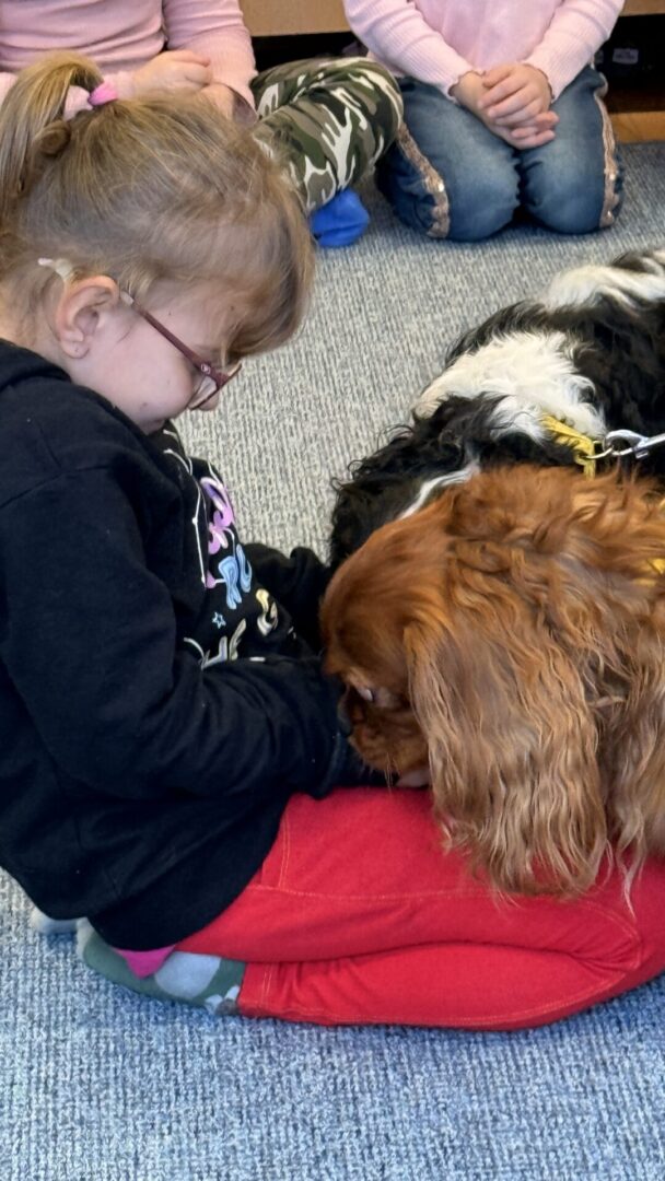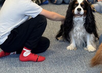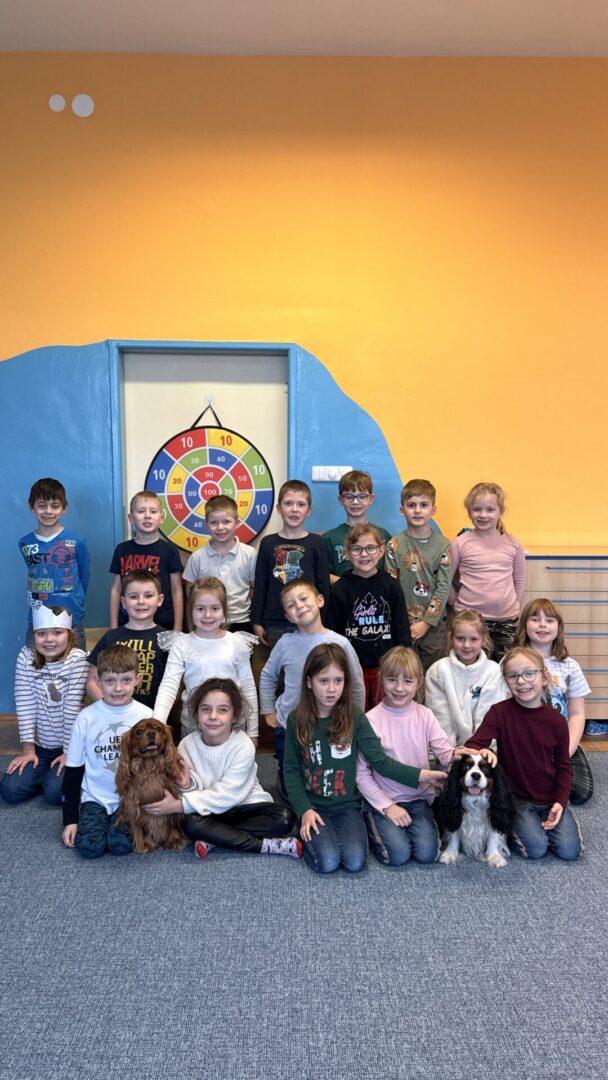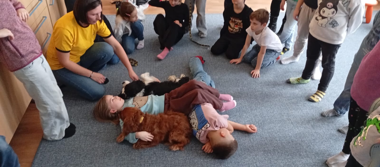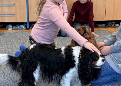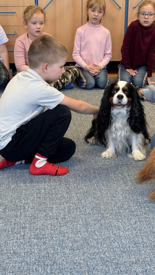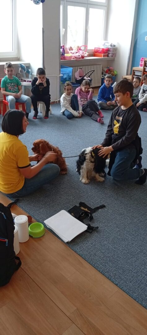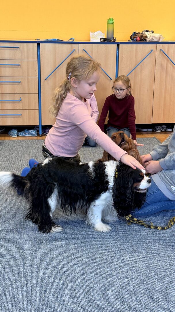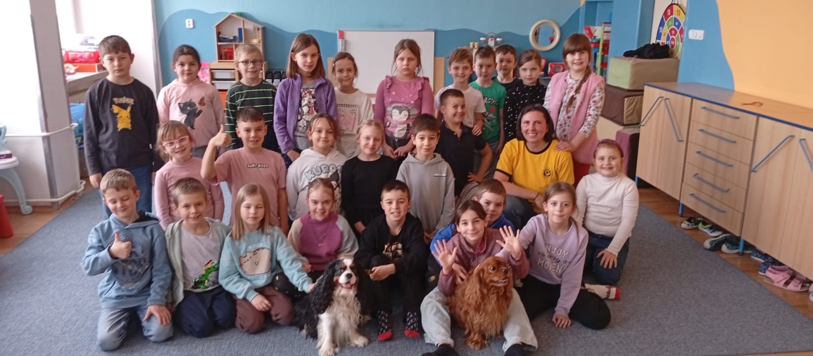 Paní, která se věnuje terapii využívající vliv psa na psychiku a zdraví lidí, navštívila spolu se dvěma psími kamarády naši školní družinu.