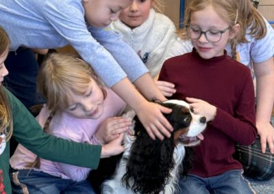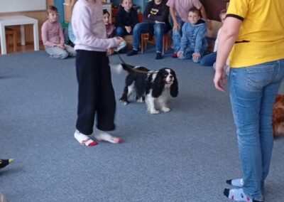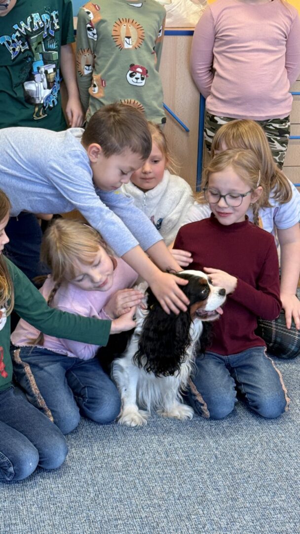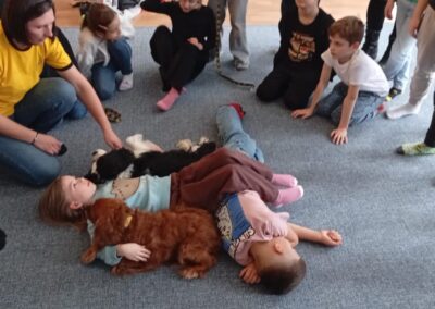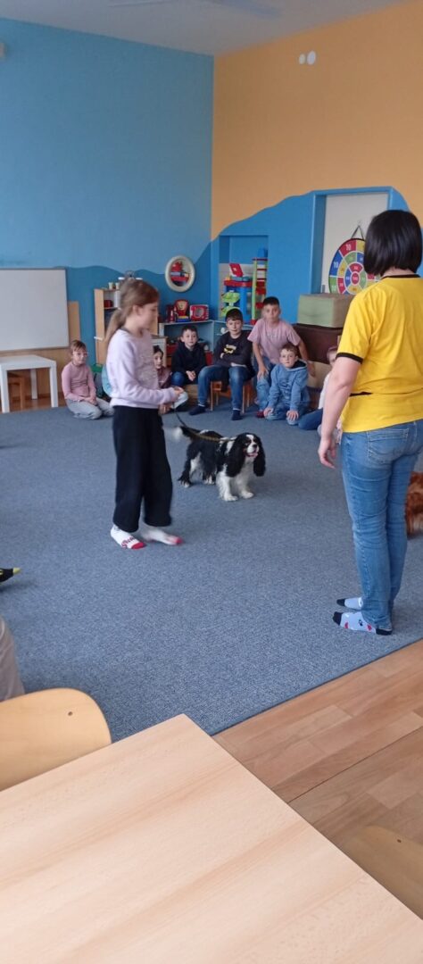 Děti se dozvěděly, co je canisterapie, jak funguje a k čemu slouží. Vysvětlili jsme si, že kontakt se psem pomáhá ke zklidnění, zlepšení nálady a přináší radost a pohodu. Během odpoledne si děti mohly psy pohladit, pozorovat jejich chování a dozvědět se zajímavosti o jejich výcviku. Setkání probíhalo v příjemné atmosféře a děti si ho velmi užily. Odcházely spokojené a plné hezkých dojmů.